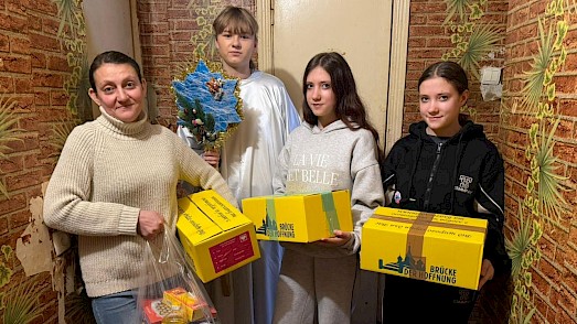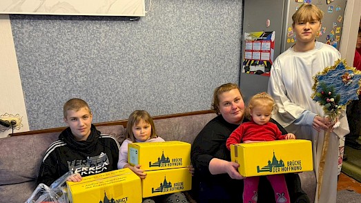 Unsere Jungen Missionare, begleitet von einem Engel mit leuchtendem Stern, wünschen den Familien gesegnete Weihnachten, bringen ihnen Hoffnungsboxen und Lebensmittelpakete. Fröhliche Weihnachtslieder, ein warmes Lächeln und Umarmungen verwandeln die Atmosphäre in eine festliche Stimmung. Die Freude und Dankbarkeit sind groß.