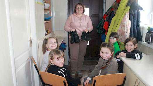 In unseren Kinderhäusern lesen wir zusammen. Wir lösen Mathematikaufgaben, schreiben kurze Geschichten. Unsere Kinder lernen, wie man Wäsche wäscht und zusammenfaltet und wie man seine Schuhe richtig putzt. Die Mädchen in unserem Zufluchtsort in Pawliwka haben sich über ihre glänzenden, blitzblanken Schuhe so gefreut!