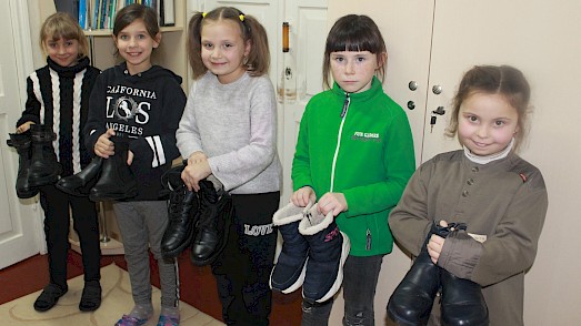 „Zuhause kümmert sich meine Mutter um meine Schuhe. Jetzt kann ich das allein. Schau mal, Tante Aliona, meine Schuhe sehen aus, als wären sie neu.“ Mascha ist glücklich und zufrieden!