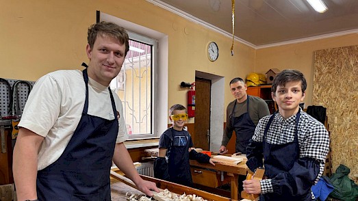 „Mhm, ich liebe den Geruch von Holz in unserer Lehrwerkstatt“, meint Artem begeistert. „Ich auch… ich auch!“, stimmen alle zu.