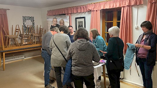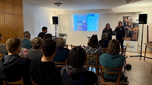 Im Vorfeld wurden im Kindergottesdienst und von mehreren Gemeindemitgliedern einige Hoffnungsboxen für uns gepackt. Außerdem stricken hier viele Menschen Socken für uns, die sie uns zu unserer Veranstaltung mitbrachten.
