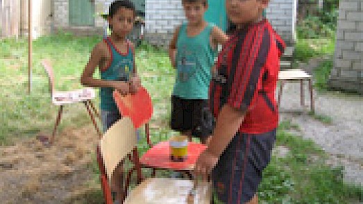 Vor längerer Zeit erhielten wir mit einem Hilfsgütertransport aus Deutschland bunte Stühle, die wir in unseren „Zufluchtsort“ nach Pawlowka brachten. Die Stühle sind zwar noch stabil, doch die Farbe blättert immer mehr an. In der vergangenen Woche plante Luda Slobodianik, die unsere Missionsarbeit in den „Vergessenen Dörfern“ leitet, eine ganz besondere Aktion. Bewaffnet mit Schmirgelpapier, Farbe und Pinseln, schleppten wir die Stühle gemeinsam auf den Hof. Zuerst erklärte Luda den gespannten Jungen und Mädchen ihre Aufgaben und dann ging es auch schon los. Die Begeisterung ist kaum zu beschreiben und am Ende des Nachmittags betrachteten wir stolz unsere bunten Meisterwerke.