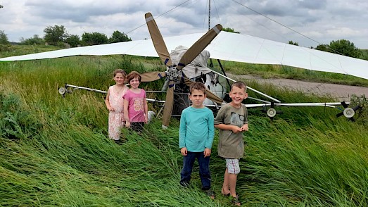 Plötzlich stehen wir vor einem komischen Flugobjekt. Daneben sitzt der Pilot, ruht sich im Gras aus. Ganz stolz erklärt er uns sein Flugzeug, erzählt wie er durch die Wolken gleitet. Diesen Tag werden unsere Kinder nicht so schnell vergessen.