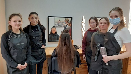 In der vergangenen Woche hat Darina Panassenko einige Mädchen zu einem neuen Kurs in unserer „Lehrwerkstatt“ eingeladen. Sie Teilnehmerinnen lernen in den kommenden Wochen neue Frisuren kennen. Zu Beginn lernen sie aber erst einmal einiges über Haare und die Kopfhaut allgemein.