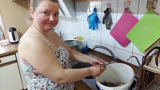 Familie Korolenko hat sechs Kinder. Fünf haben wir in unser “Tageskinderheim am See” eingeladen. “Hier ist es so schön. Und du hilfst uns auch wirklich bei den Hausaufgaben?” Sofia ist aufgeregt. “Komm, ich zeige dir unseren Spielplatz”, Arina nimmt sie an die Hand, führt sie durchs Haus und den Garten.