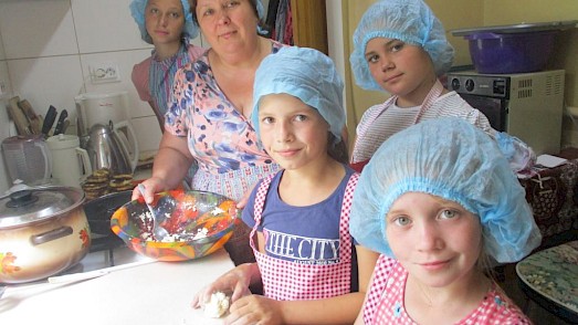 In unserem „Zufluchtsort“ in Odarjewka arbeitet Wera Kolomoetz in der Küche. In diesen Tagen will ihr jeder helfen. Da nutzt sie die Zeit für Kochkurse für unsere kleinen Gäste.