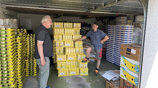 Anfang August sollte unser nächster Hilfsgütertransport stattfinden. Im Vorfeld hatten wir dieses Mal die Möglichkeit, große Mengen an Lebensmitteln und Hygieneprodukten beim Großhändler zu bestellen. Insgesamt 18 Paletten Nudeln, Fleisch- und Fischkonserven, Salz, Zucker, Haferflocken, Kakao... haben wir dann, mit Hilfe einiger fleißiger Helfer, abgeholt. Hinzu kamen noch fünf Paletten mit Seife, Duschgel, Toilettenpapier und weitere Hygieneprodukte bei einem anderen Händler.