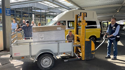 Einiges musste noch einmal in Bananenkartons verpackt werden, andere Produkte waren bereits in stabilen Kartons.