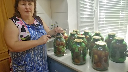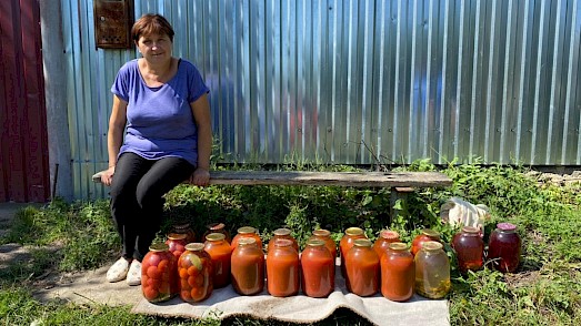 „Mama, schau mal, ich habe die reifen Paprika geerntet. Jetzt pflücke ich noch ein paar Birnen.“ Dascha stellt den Eimer mit dem Gemüse in die Küche. „Mama, das müssen wir alles noch einkochen. Da haben wir viel Arbeit vor uns.“