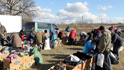 Bis zur Decke mit Bananenkartons beladen machen wir uns mit unserem VW Bus auf den Weg Richtung Kobsarewka. Wir sind froh, dass wir im März einen Hilfsgütertransport nach Odarjewka bringen konnten und nun warten wir darauf, dass die Hilfsgüter vom letzten Transport zur Verteilung freigegeben werden.
