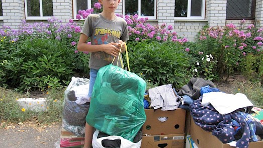 Heute haben wir einen Einsatz mit Hilfsgütern in dem „Vergessenen Dorf“ Mironowka. Die Mütter aus ganz besonders armen Familien, die wir zu dieser Aktion eingeladen haben, sind natürlich froh, dass wir Winterkleidung mitgebracht haben.