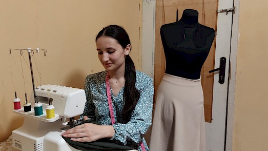 Jesfir kommt aus Boschedariwka, hat schon als kleines Mädchen gerne genäht. Vor zwei Jahren bekam sie von uns eine Nähmaschine und einen Onlinenähkurs geschenkt. Letztes Jahr zog sie nach Ushgorod, um dort eine Ausbildung zur Näherin zu beginnen. Vor kurzem machte sie ein Praktikum in einer Nähfabrik.