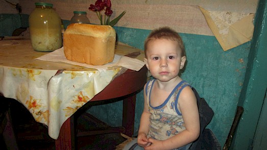 Eine von ihnen ist Familie Guz. Sie lebt am Ende von einem „Vergessenen Dorf“, in Mirnoje, in einer ärmlichen Hütte. Sie sammeln Blätter von Beerensträuchern und kochen daraus Tee. Manchmal erhalten die Kinder eine Scheibe Brot von Nachbarn, die Mitleid mit ihnen haben.