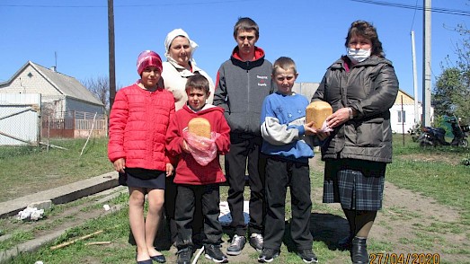 Jeden Tag sind unsere Mitarbeiterinnen auch in Odarjewka mit unserer „Mobilen Suppenküche“ unterwegs, um arme Familien mit Suppe und Brot zu versorgen.