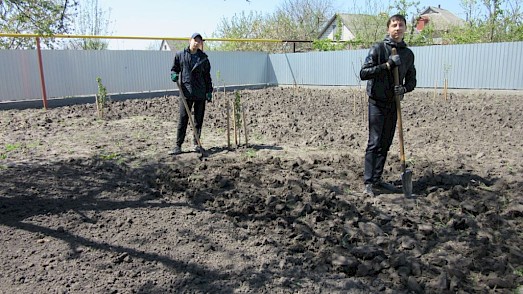 Anja Losowaja, die unsere Gärten in Swetlowodsk betreut, hat sie für ihre Arbeit eingewiesen. Wenn wir diesen Garten bestellt haben, sind alle unsere Kartoffeläcker und Gemüsegärten fertig.