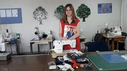 Als sie sich Gedanken um ihre berufliche Zukunft machte, fing sie an unsere „Lehrwerkstatt“ zu besuchen. Wir halfen ihr in einer Nachbarstadt einen Ausbildungsplatz zur Schneiderin zu finden. Hier ist sie durch all das, was sie bei uns gelernt hat, mit Abstand die beste Schülerin. Leider wurde in der Corona-Krise auch ihre Ausbildung erst einmal unterbrochen.