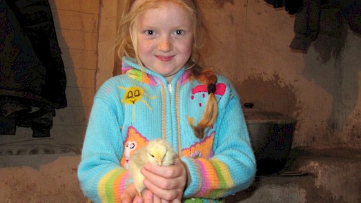 Familie Ponomar hat fünf Kinder. Sie wohnen in einem „Vergessenen Dorf“. Wir haben ihnen bereits Hühner geschenkt und nun haben wir sie zusätzlich mit Küken versorgt. Sie verkaufen die Eier in ihrem Dorf.