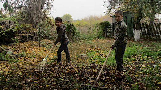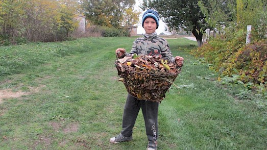 Natürlich fallen auch in unseren Gärten die Blätter von den Bäumen. Und weil wir auch in unseren Gärten Ordnung haben wollen, melden sich jeden Tag Kinder, die begeistert an die Arbeit gehen, die mit helfen, die Blätter zusammen zu harken.