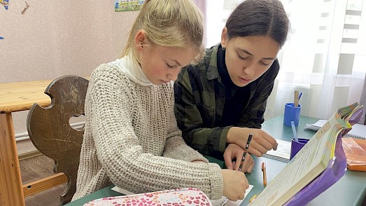Im Tageskinderheim am See helfen wir den Mädchen und Jungen bei den Hausaufgaben. „Ich habe eine gute Note in Ukrainisch bekommen.“ Dominika ist stolz. „Endlich habe ich verstanden, wie man in Spalten dividiert“, ruft Sofia laut.