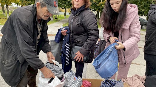 Bei einem Hilfsgütereinsatz in ihrem Dorf durften sich die Bewohner Kleidung, Schuhe und Bettwäsche aussuchen. Die Kinder waren von den Spielsachen begeistert! Auch warme, liebevoll gestrickte Socken, waren begehrt. Ein herzliches Dankeschön an alle, die unsere Hilfsgüterarbeit unterstützen. Auch dieses Jahr wieder konnten wir unzählige Bananenkartons voller Kleidung in die Ukraine transportieren.