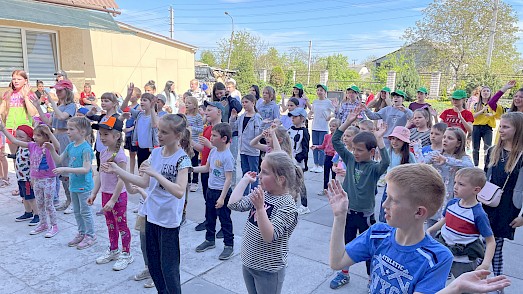 Fröhliches Kinderlachen füllt den Hof einer christlichen Gemeinde in Switlowodsk. Fast 80 Kinder haben Spaß zusammen. Sie springen und tanzen und werden zumindest für kurze Zeit vom Schrecken des Krieges abgelenkt.
