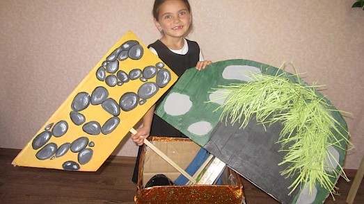 Und natürlich haben wir geübt, wie wir nach dem Stück auf die Bühne treten und Tante Aliona ganz stolz verkündet: „Das sind die Künstler von unserem Puppentheater!“