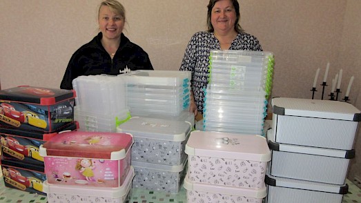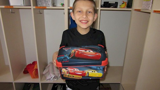 „Schaut mal, das ist meine Box, da sind ganz viele lustige Bilder drauf!“ Dascha kann ihr Glück kaum fassen. Sie weint fast vor Freude und will, dass jeder ihre Box bewundert.