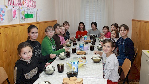 Molkereiprodukte sind für die Entwicklung eines Kindes wichtig. Wir sind froh, dass wir in unseren Häusern regelmäßig Milchspeisen kochen können. Für unseren „Zufluchtsort“ in Pawliwka bekommen wir Milch von einer Familie, für die wir vor zwei Jahren ein Kalb gekauft haben. Anja kocht dann die Lieblingsgerichte der Kinder. Nastja freut sich: „Der Milchbrei ist so lecker! Kann ich noch mehr davon bekommen?“