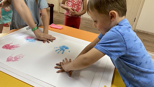 Seit einiger Zeit besucht Mischa unser „Spatzennest“. Dort muss er nicht ständig an den Krieg denken, kann mit gleichaltrigen Kindern spielen. Im „Spatzennest“ malen wir zusammen, spielen Lego, lernen erste Buchstaben und Zahlen kennen. Wir haben Mischa liebevoll in die Gruppe integriert. „Mama sagt, meine Spielsachen sind alle verbrannt. Vielleicht ist mein Lieblingsauto nicht verbrannt. Ich hätte es so gerne wieder.“ Es ist nicht einfach, die Kinder vom Krieg abzulenken.