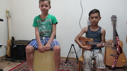 Einige lernen Gitarre zu spielen, andere Keyboard, Cajon oder Ukulele. Bei unseren kleinen Festen, zu denen wir ihre Eltern einladen, dürfen sie präsentieren, was sie bei Andrej gelernt haben.