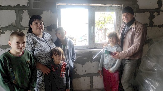 Familie Rusak ist eine kinderreiche Familie. Zu ihr gehören drei leibliche Kinder und vier Adoptivkinder, die zum Zeitpunkt der russischen Invasion in die Ukraine zur Familie dazukamen. Vom Staat erhalten die Eltern Zuschüsse. Ein großes Problem ist die Fertigstellung des Hauses. Pavlo, der Familienvater, arbeitet seit längerem am Esszimmer. Jedoch haben sich die Preise für Baumaterialien verdoppelt, einige sogar verdreifacht. Wir haben neue Fenster gekauft und unterstützen die Familien mit Lebensmittelpaketen. Die Isolierung der Decke und andere Arbeiten stehen noch aus.