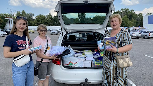 Anfang August sollte unser nächster Hilfsgütertransport stattfinden. Im Vorfeld hatten wir dieses Mal die Möglichkeit, große Mengen an Lebensmitteln und Hygieneprodukten beim Großhändler zu bestellen. Insgesamt 18 Paletten Nudeln, Fleisch- und Fischkonserven, Salz, Zucker, Haferflocken, Kakao... haben wir dann, mit Hilfe einiger fleißiger Helfer, abgeholt. Hinzu kamen noch fünf Paletten mit Seife, Duschgel, Toilettenpapier und weitere Hygieneprodukte bei einem anderen Händler.