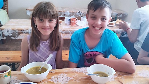 Gott sei Dank finden in den Orten, in denen unsere Kinderhäuser stehen, keine aktiven Kriegshandlungen statt. Wir nehmen viele Flüchtlinge bei uns auf, die hier ein vorübergehendes Zuhause finden. Die Flüchtlingskinder teilen alle denselben Schmerz. Sie mussten ihre gewohnte Umgebung, ihre Freunde verlassen. Ihre Geschichten berühren unsere Herzen. “Unsere” Kinder kümmern sich liebevoll um die Flüchtlinge, teilen ihr Spielzeug mit ihnen und versuchen, sie aufzuheitern.