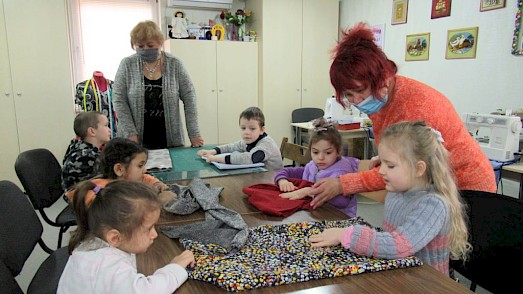 Am Anfang muss man erst einmal das Werkzeug kennenlernen, um sich nicht zu verbrennen. Aliona Raschkowa, die unsere „Villa Regenbogen“ leitet, weist die Neulinge ein. Die Technik ist nicht so einfach. Einige ärgern sich, wenn sie kleine Fehler machen, da man sie kaum korrigieren kann.