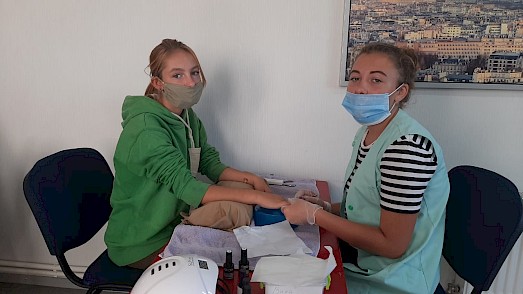 In der Ukraine besuchen viele Frauen regelmäßig kleine Studios für Maniküre, Pediküre und spezielle Frisörsalons. Deshalb bieten wir in unserer Lehrwerkstatt Kurse in diesem Bereich für Mädchen an, da man in diesen Salons leicht eine Arbeitsstelle findet.