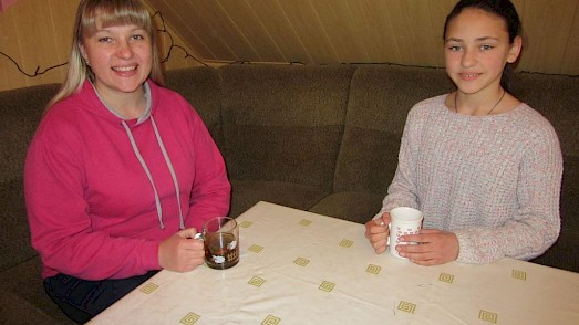 „Tante Soja, hast du heute Zeit für mich?“ Wenig später sitzt Soja Tschechowskaja, die unser „Tageskinderheim am See“ leitet, mit einem Mädchen bei einer Tasse Tee in unserem „Raum der Stille“. Draußen hängt eine Schild: „Bitte nicht stören!“
