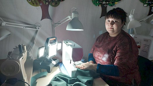 Wir haben dem Mädchen geholfen, einen Stoff auszuwählen, und standen ihr beim Nähen mit Rat und Tat zur Seite. Selbst Stromausfälle hielten Anja nicht vom Nähen ab. Nur wenn Luftangriffssirenen ertönten, musste sie ihre Arbeit unterbrechen. Kurz vor ihrem Geburtstag konnte sie ihr neues Kleid zum ersten Mal anprobieren. Anja ist glücklich!