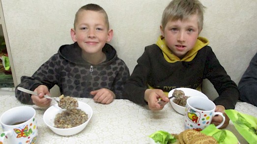 In Odariwka, einem kleinen Dorf, in dem einer unserer „Zufluchtsorte“ liegt, gibt es bisher nur selten Bombenalarm. Trotzdem bestimmt der Krieg den Alltag unserer Kinder. „Tante Tanja, es ist Fliegeralarm! Schnell! Komm zu uns!“ Tanja Kononenko, unsere Erzieherin, läuft in das Spielzimmer. Am Boden haben die Jungen mit Legosteinen, Spielekartons und anderem Material eine Wand gebaut. „Unsere Mauer ist gepanzert. Keine einzige Bombe kann hier durchbrechen! Schau, wir verstecken uns.“ Auf Kommando fallen alle Jungs auf den Boden.