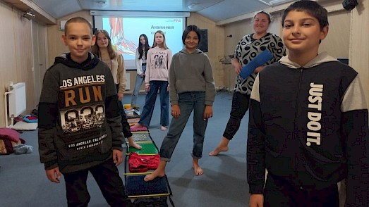 Die Kinder in der Ukraine gehen schon lange nicht mehr zur Schule, sitzen stundenlang in kalten Kellerräumen. Wenn sie in unsere Häuser kommen können, wird zusammen Sport getrieben. Wir machen Gymnastik, dehnen uns. Die Mädchen und Jungen haben gelernt, wie sie sich im Notfall warmhalten können. Sie wissen, wie sie sich mit einfachen Atemübungen beruhigen und wie wichtig körperliche Betätigung ist.