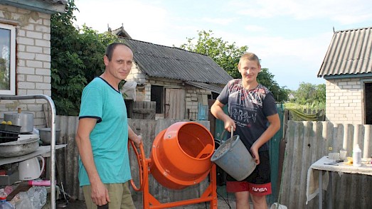 Gemeinsam mit der Familie überlegten wir, wie wir helfen können. Roma ist Bauarbeiter und könnte kleinere Bauarbeiten ausführen. Er hat jedoch kaum Werkzeug. Wir kauften für Familie Kriwarutschko einen Betonmischer. Roma freute sich riesig! „Vielen, vielen Dank! Viele Menschen benötigen im Krieg einen sicheren Schutzraum oder wollen einen bestehenden Raum verstärken. Mit dem Betonmischer kann ich den Menschen helfen und nebenbei etwas Geld verdienen.“