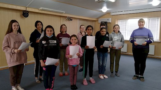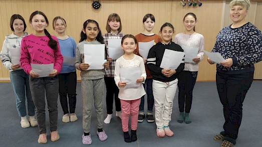 „Gottes Liebe umgibt mich jeden Tag…“ Laut schallen die fröhlichen Lieder von unserem Kinderchor durch „Villa Sonnenschein“. In der Mitte vom Chor steht Raia Merkuschina. Sie kann kaum lesen, hält ihr Liedblatt aber ganz stolz vor sich, denn sie hat bereits alle unsere Lieder auswendig gelernt.