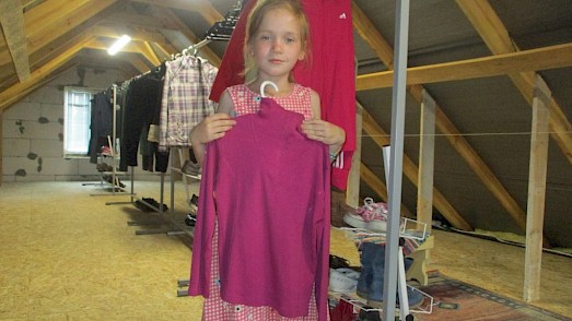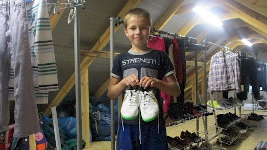 „Tante Wera, meine Schuhe sind schon lange viel zu klein. Meine Füße tun mir so weh.“ Es ist immer ein ganz besonderer Augenblick, wenn Wera Kolomoetz Kinder in unser „Kleiderstübchen“ über unserer Lagerhalle in Odarjewka mitnimmt. Gemeinsam suchen sie dann die passenden Schuhe und Kleidung aus.