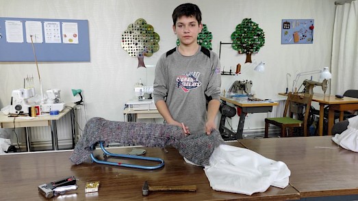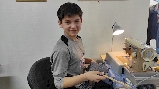 Ein wichtiger Arbeitsbereich in „Villa Sonnenschein“ ist unsere „Lehrwerkstatt für Mädchen“, in der Lena Grabenko ihre Schülerinnen darauf vorbereitet, eines Tages als Näherinnen zu arbeiten. In der Zwischenzeit nehmen aber auch Jungen an Lenas Seminaren teil. Einer von ihnen ist Wanja Merkuschin.