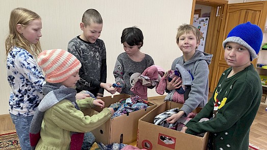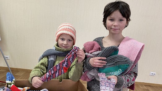 Klirrende Kälte und anhaltende Schneefälle stellen die Ukraine in dieser schweren Kriegszeit auf eine harte Probe. Die Kinder in unserem Zufluchtsort in Odariwka erhielten warme, kuschelige, bunte Socken, Mützen und Handschuhe, die in Deutschland hergestellt wurden. Die Augen der Mädchen und Jungen strahlten vor Freude.