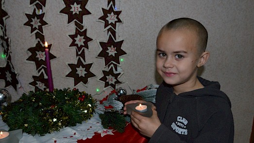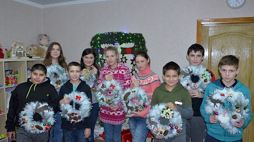 Mit den Kindern in unserem „Zufluchtsort“ in Boschedariwka basteln wir Weihnachtsdekorationen. Doch leider ist der Strom wieder einmal abgeschaltet, die Heißklebepistole kann nicht zum Einsatz kommen. Die Kinder sind traurig. Doch dann hat Lena, die Erzieherin, eine Idee. Unser „Zufluchtsort“ verfügt über einen Benzingenerator. Für kurze Zeit wird dieser gestartet und die Bastelarbeit kann vollendet werden.