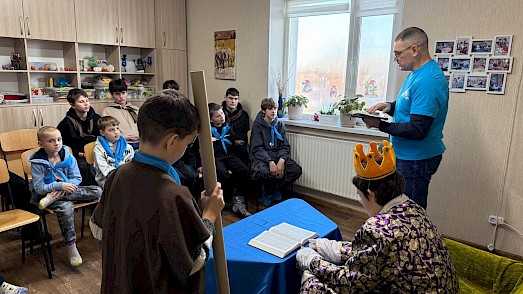 An verschiedenen Stationen reflektierten die Kinder ihre Gefühle. Sie reichten einen schweren Sack mit Steinen weiter und sprachen laut aus, was sie traurig macht. Anhand der biblischen Geschichte von Hiskia lernten sie, wie Gott eine Situation zum Besseren wandeln kann.