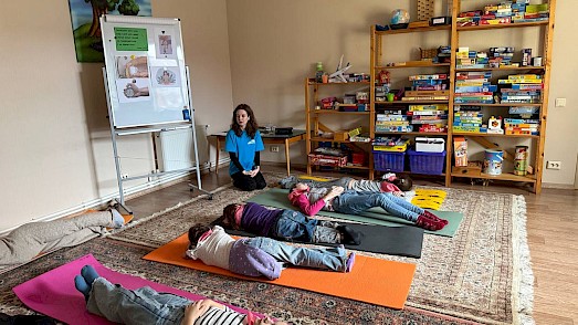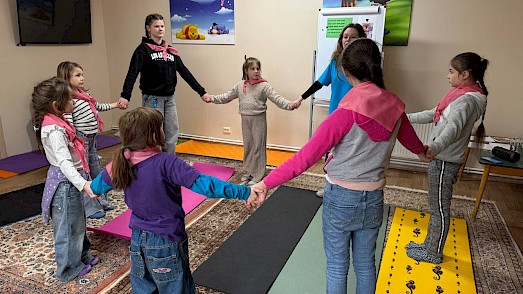 An einer Station überlegten die Kinder, was sie in ihrem Leben kontrollieren können und was nicht. Viele Dinge liegen außerhalb unserer Kontrolle und starke Angst ändert nichts daran. Wo findet man Ruhe und Frieden? Die Mädchen und Jungen lernten praktische Techniken, um ihre Unruhe zu überwinden und zu kontrollieren.