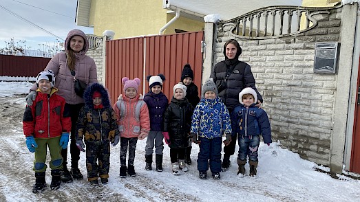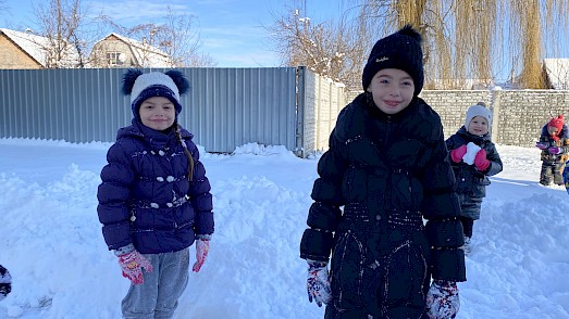 Was gibt es schöneres als Schnee für unsere Kleinsten aus dem „Spatzennest“. Sobald es draußen schneit, können sie es nicht abwarten mit Schneebällen zu spielen, Schlitten zu fahren und Schneemänner zu bauen. Trotz dem schrecklichen Krieg tun wir alles, damit sich unsere Kinder sicher fühlen und Spaß haben. Die Freude war riesig, als wir uns an einem kalten Vormittag alle warm anzogen, um im Schnee zu spielen. Anschließend, auf einer Winterwanderung, konnten sich alle so richtig austoben. „Schau mal, da sitzt ein kleines Vögelchen auf dem Baum. Tante Lisa, meinst du, es friert?“, ruft Dascha besorgt.