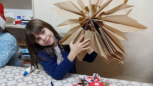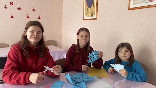 „Ich erkläre den kleineren Mädchen, wie man Schneeflocken ausschneidet“, schlägt Dascha vor. Am Tisch herrscht reges Treiben. Kleine Finger verwandeln Papier in kunstvolle Muster. Das Arbeiten macht Freude, besonders wenn die Freunde dabei sind und festliche Musik erklingt.