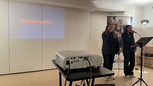 Letzten Donnerstag kamen Lena und Lisa Uchnal wohlbehütet aus der Ukraine in unserem Büro in Rechtenbach an. Gestern machten sie sich mit Rebekka und Paul Herrmann und Renate Rudat auf den Weg in Richtung Bayern, nach Weißenburg-Suffersheim, zu ihrer ersten Veranstaltung.